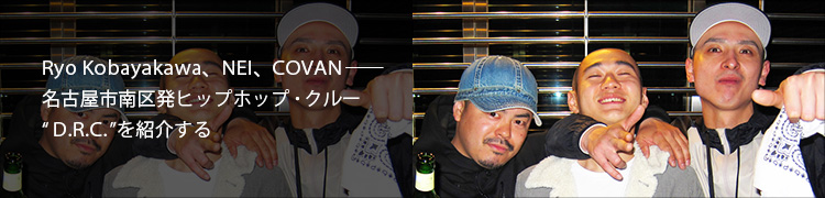 COVAN 「Ryoに全信頼を置いているので。いま、俺もNEIもRyoの家で毎週レコーディングしているんですよ。で、NEIも俺もD.R.C.から作品を出している。だから、俺は、RyoのスタジオがD.R.C.の軸になっていると思いますね。homareもそのスタジオで録ってるし、NEIとhomareがいることがD.R.C.の特徴だと思います。俺は、NEIとかhomareから自分にないものをもらったりしているし、この2人がいることが、他の名古屋のクルーやグループと違うとこかなって」