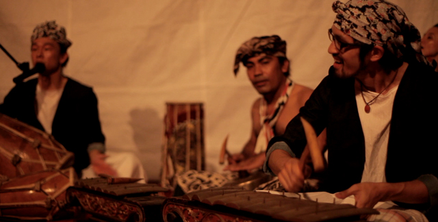 「ガムランは、音が上に広がるんです。天井が高ければ高いほど、音が広がって、それが上からきれいに降り注ぐ。こうやって壁がない場所だと跳ね返りもなくて、降ってきた音もきれいに逃げていくし、だからクリアに聴こえるんですよ」
