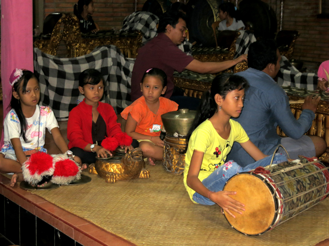 バリ最終夜、別れの挨拶をしに師匠たちのアジトを訪れた。子どもたちが大勢集まり、ガムランの練習をしていた。ふと気づくと、隅のほうにテンペが紛れている。滞空時間のみんなもこうやって稽古をつけてもらってきたのだ。