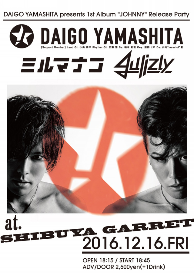 山下大悟”としてソロ・デビュー・アルバム『JOHNNY』を12月7日(水)にリリース。王道のロックンロールを鳴らし続けるプロジェクト=“JOHNNY”として今なお海外ツアーなども敢行する彼がこのアルバムで挑んだのは、ビートロックの影響も色濃くうかがえる、現代的ともいえる骨太なロック。どのようにして今回のアルバムが作り出されたのか、12月16日(金)に渋谷GARRETで行なわれる