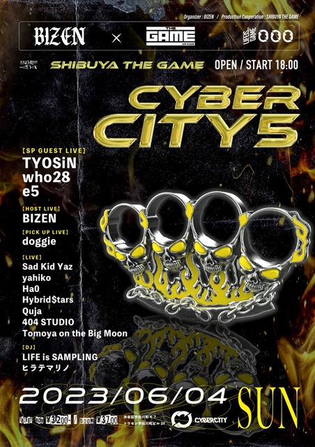東京“ネオパンク”を牽引する2人組、BIZEN(ビゼン)が東京・渋谷のクラブSHIBUYA THE GAMEと共同主催をとる定期イベント〈CYBER CITY 5〉が6月4日(日)に開催、その詳細が発表されています。