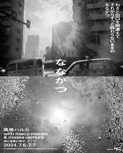 そして、7月6日(土)・7日(日)の2日間に渡ってShibasaki MODで開催される詩と短歌の展示・ライヴイベント「なながつ」では、往復書簡で書き下ろした詩と短歌に、写真家・植村マサの写真を組み合わせた展示を行います。数量限定のZINE&CDやTシャツも販売。6日(土)には短歌・詩の朗読&トークイベント、7日(日)には同じくラッパーの山田大介を交えたスペシャルライヴも開催予定。写真によって奥行きを増してゆく言葉の世界を、是非会場で堪能してください。