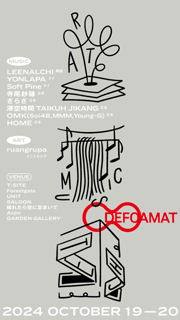 カルチャーが生活と地続きのものであるということを認識し、ものごとを思考するきっかけを与えることを目的とした〈DEFOAMAT〉。音楽やアートそのもの、それらがもたらす問いに興味を持ち、来場者の生活や価値観に変化をもたらすきっかけを与えてくれるイベントになるでしょう。今後も気鋭のアーティストの出演や、アジア最先端のカルチャーコンテンツの発表を控えているとのことで、公式サイトやSNSをチェックしてみてください。