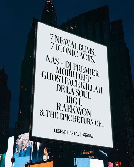 重鎮ラッパーのNASらを擁するヒップホップレーベル「マス・アピール(Mass Appeal)」が、ニューヨークのヒップホップ界レジェンドたちによる7作のニュー・アルバムの連続リリースを発表。『Legend Has It...』と題されたシリーズでは、ナズ&DJプレミア、ゴーストフェイス・キラー、モブ・ディープ、レイクウォン・ザ・シェフ、ビッグ・L、デ・ラ・ソウルら錚々たる面々の新作に加え、まだ名が明かされていないアーティストによるサプライズ復帰作も年内に順次リリースされる予定となっています。