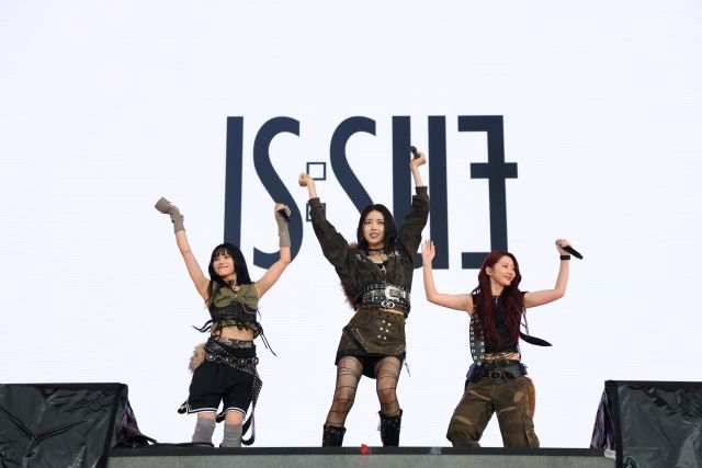 [ライヴ・レポート] トップバッターを務めたのは、新世代ガールズグループ・IS:SUE。フェスの幕開けを飾った1曲目は、強烈に鼓膜を刺激するビートが特徴の楽曲「Breaking Thru the Line」。登場から深く被ったフードを一人ずつ外し新しいビジュアルを公開すると会場からは歓声が上がり、勢いそのままパワフルなラップと堂々としたパフォーマンスで観客を引き込みました。
