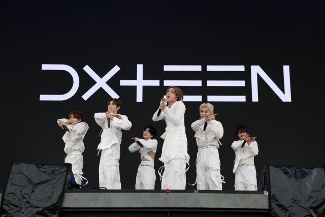 続いて登場したのはDXTEEN。序盤から「Dealio!?」「Handle」といったアップテンポなナンバーを立て続けに披露し、メンバーの一挙一動に会場にいるファンから悲鳴が上がり、ステージ全体を躍動感で包み込みました。