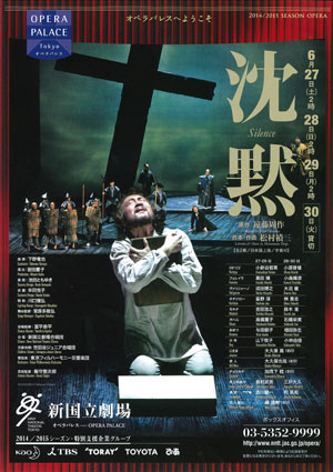 オペラ『沈黙』は、20世紀を代表する日本人作曲家のひとり、松村禎三(1929-2007)唯一のオペラ作品。神の存在と信仰の意義を問う遠藤周作の不朽の名作をもとに、松村がみずから台本を執筆、13年という歳月をかけてオペラ化した力作です。1993年に世界初演、日本オペラ界における新たな傑作の誕生として大きな話題を呼び、新国立劇場でもたびたび上演されています。宮田慶子演劇芸術監督による演出は、傾いた十字架を乗せた廻り舞台と照明を効果的に使った装置が特徴で、2012年の初演では、指揮の