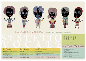 本コンサートで演奏するのは、辻 康介が主宰する声楽アンサンブルのSESTETTO VOCALE(セステット・ヴォカーレ)。歌手だけによるア・カペラ編成で、イタリア・ルネサンス音楽、とりわけマドリガーレを中心に演奏するグループです。SESTETTO VOCALEにとって初となる本企画は、歌い手も聴き手もテーブルを囲んで、至近距離でマドリガーレのある生活そのものを楽しめるという試み。マドリガーレの原点ともいえる音楽の楽しみ方で、テーブルを囲む日常空間にあふれていた音楽を体験してみてはいかがでしょうか。