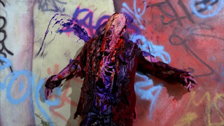 映画評論家の江戸木 純に「映画史上最も汚い傑作にして人体溶解ホラーの最高峰!」と言わしめた『吐きだめの悪魔』は、1987年に“ヘラルド・ベスト・アクション”シリーズの第2弾として「片腕サイボーグ」と共に公開。ニューヨークを舞台に、安い古酒を呑んだ人々が溶けていくというカルト的な人気を誇るトラッシュ・ムービーです。グロテスクな特殊メイクは、同じく80年代のカルト映画を代表する『