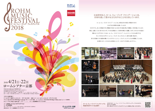 ローム株式会社が支援する公益財団法人ローム ミュージック ファンデーションが、〈ローム ミュージック フェスティバル 2018〉をロームシアター京都にて2018年4月21日(土)、22日(日)に開催。