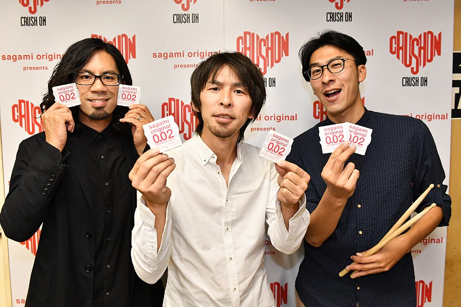 同イベントでは“サガミオリジナルを片手に愛を叫ぼう!”をコンセプトに、入場時にコンドームを配布。コンセプトに賛同した出演3組のライヴと併せ、“新しい出会い”“人との繋がりの大切さ”“愛する人への思いやり”などをアーティスト / オーディエンス双方が考える場として〈CRUSH ON〉を開催したサガミオリジナルのメッセージが込められた内容となりました。