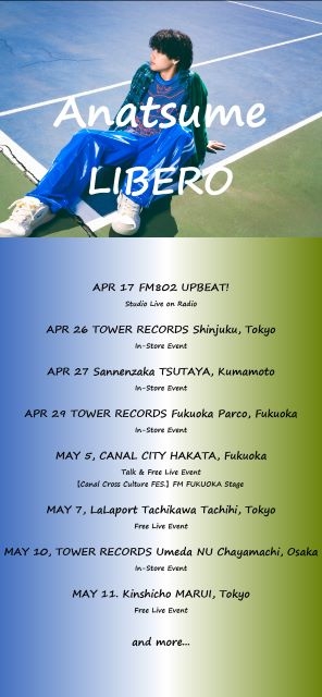 4月17日(水)に生出演予定のFM802『UPBEAT!』では2曲のスタジオライヴを披露。これをパイロットに、いくつかの公演が発表されました。今後も続報が続くので、各地オンエアならびにイベントの詳細はA夏目スペシャル・サイトをチェックしてみてください。