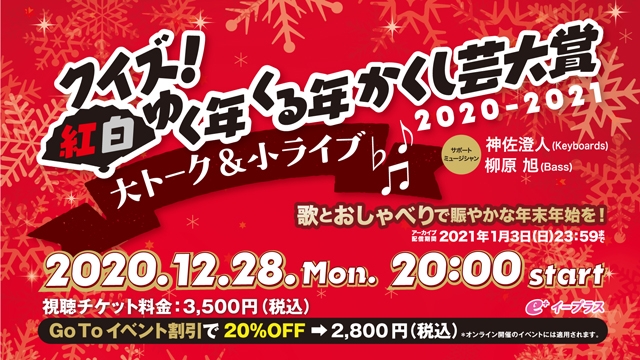 スターダスト☆レビュー)が年末年始をゆるりと盛り上げるスペシャル企画〈クイズ!紅白ゆく年くる年かくし芸大賞 2020-2021 大トーク&小ライブ〉が12月28日(月)に配信されることが決定しました。
