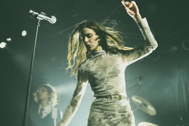 20時過ぎに暗転すると物騒なシンセサイザーが聞こえてきた。今回の入場SEはキリング・ジョーク「Requiem」。前回の初来日公演がクレイジー・フォックス「Axel F」で景気良く姿を表したのと比べると、幾分かは彼らのテイストに適った選曲になったのだろうか? ジェズミ・タリク・フェフミとサム・フェントンの2人をはじめとしたメンバーがストレート・ジーンズで揃え、その後にボーカルのニーナ・クリスタンテがダンスに備えたタイトなウェアを纏って登場する。長い髪が風を受けて気だるく流れる様はどこかゴージャスであり、ギターをロー・ポジションに構えたジェズミとサムの風格も相まって、2005年あたりのエディ・スリマンのショーからそのまま飛び出してきたかのようなインパクトだ。