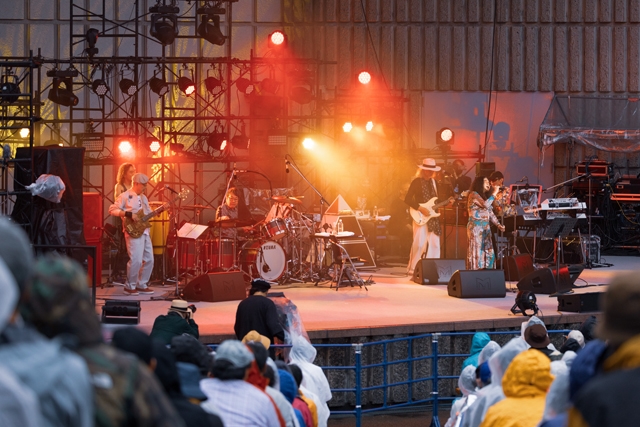 今回のライブのテーマは「Smoky Medicine」(スモーキー・メディスン)。1973年に結成されたこのバンドは、18才だったCharをはじめメンバーが超若かったのにもかかわらず、演奏力と表現力の高さで大きな注目を集めた。しかしプロ・デビューすることなく翌年解散してしまったので「幻のバンド」と呼ばれている。この日はオリジナル・メンバーのChar(G/Vo)、金子マリ(Vo)、鳴瀬喜博(B)、佐藤準(Key)に加えて、09年に逝去したドラマー藤井章司に代わって古田たかしが参加。「幻のバンド」が50年の時を経て蘇るとあってチケットは即ソルドアウトし、約3000人のオーディエンスが野音に詰めかけた。