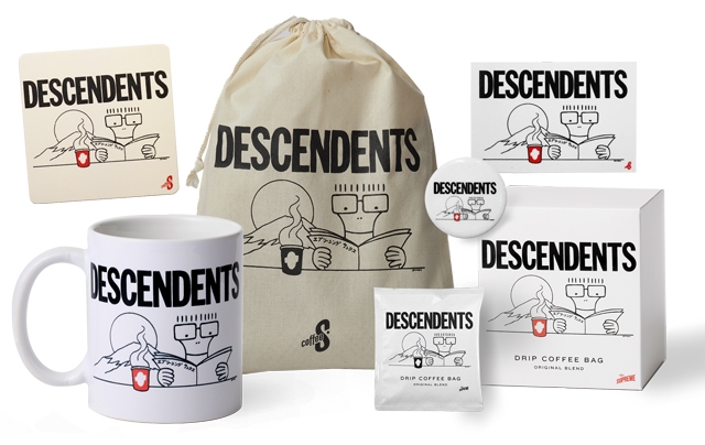 ラインナップは、 ディセンデンツのアイコン・イラストをモチーフにした、オリジナルブレンドのドリップ・バッグ・コーヒー 、マグカップ、さらにはディセンデンツの代表的なアルバム『