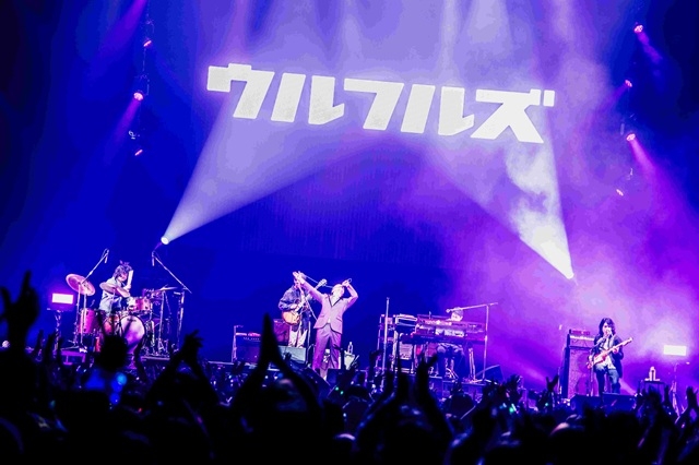 続いて、今回の“対バン”相手となるウルフルズ。ステージでは、「バンザイ〜好きでよかった〜」「ええねん」「ガッツだぜ!」を含む全8曲を披露。途中、会場の停電による機材トラブルでライブが一時中断される場面もあったが、その間すら笑顔と歓声が絶えないのは、ウルフルズならではの光景だった。再開後は、最新曲「おっさんのダンスが変だっていいじゃないか!」の歌詞をもじり、“会場の電源が落ちたって いいじゃないか”と観客を沸かせる一幕も。圧倒的なエンターテインメント力と抜群のグルーヴで、ウルフルズは会場に集ったすべての人々を愛と笑顔で包み込んだ。