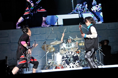 「latest」を含む4曲を披露したのは、DREAMS COME TRUEのシングル「その先へ」にフィーチャリング・アーティストとして参加していたFUZZY CONTROL。紅一点のドラマー、SATOKOのタイトかつ力強い演奏や、70年代ハード・ロック風のギター・テクもお手の物のJUON、流麗さとキレの良さを共存させたJOEのベースなど、見事な腕前で楽曲をさらにパワフルなものへ!