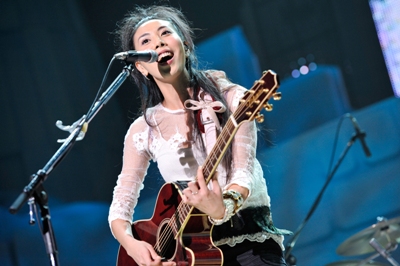 吉田美和を、中村正人もベース・ラインが繰り出すリズムで後押し! 冬フェスゆえの(通常よりは)短時間のライヴにもかかわらず、あっという間に会場はヒートアップ。「みんな、大晦日はテレビの前で応援しててね。緊張しないように応援しててね」アンコールを終え、吉田美和は笑顔でそう呟きながらステージを後にしました。