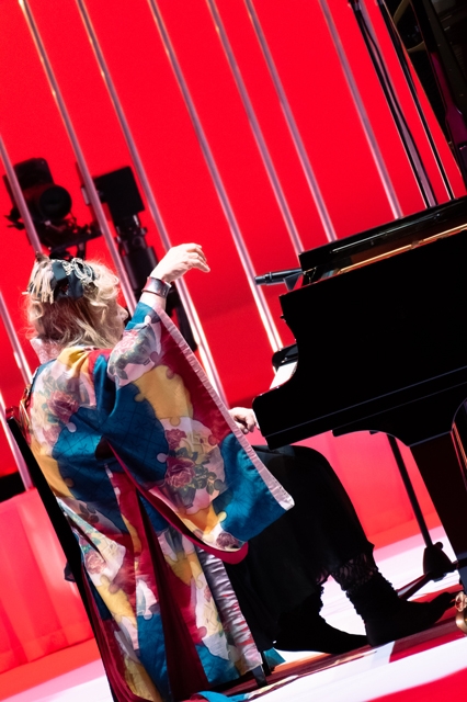 そして最後はもちろん「ラ・カンパネラ」。フジコ独特の音色が会場の隅々にまで響き渡る。曲の劇的な展開に合わせて、照明がブルーからピンク、さらには情熱的な赤へと変化。小松とフジコが目指す「総合芸術」の一端が見えた気がした。
