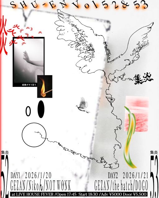 そして、全国47都道府県に中国・上海公演を加えた全50公演で展開してきたGEZANのツアー〈47+TOUR『集炎』〉より、最後の追加3公演が決定。東京・LIVE HOUSE FEVERでの2デイズ(DAY52&DAY53)には