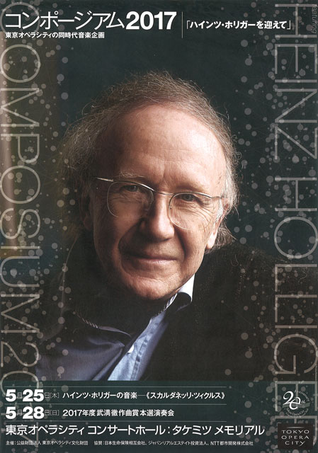 本選演奏会に先立ち、5月25日(木)にはホリガー作品の演奏会〈ハインツ・ホリガーの音楽 - 『スカルダネッリ・ツィクルス』〉を開催。今回が日本初演となる2時間半におよぶ大作「スカルダネッリ・ツィクルス」は、1975年から書き始められた、詩人フリードリヒ・ヘルダーリンの詩による無伴奏合唱のための「四季」、小管弦楽のための「スカルダネッリのための練習曲」、ソロ・フルートのための「(t)air(e)」を基に、組み合わせや新たな曲の追加で91年に完成した、まさにホリガーの音楽の集大成ともいえる作品です。