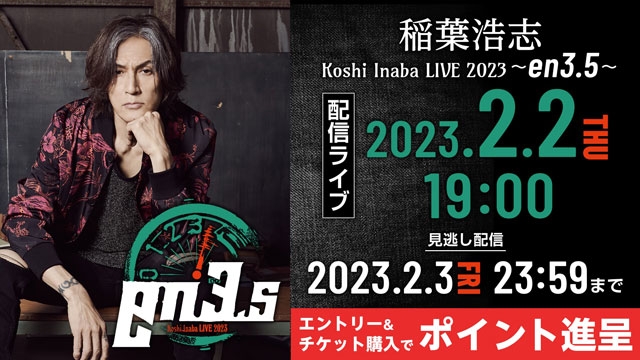 稲葉浩志の単独ライヴ〈Koshi Inaba LIVE 2023 〜en3.5〜〉の配信ライヴを実施します。2022年12月17日(土)より視聴チケットを販売中です。