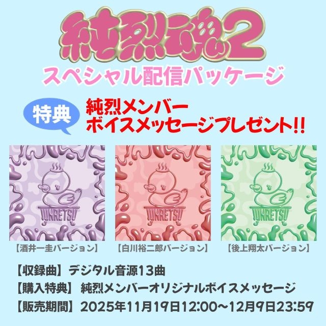 また、メンバーによるオリジナル・メッセージ入りの『純烈魂 2』のスペシャル配信パッケージもクラウンミュージックストアにて期間限定でDL販売中です。