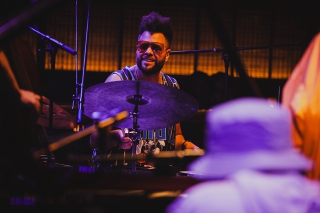 カッサがマイクでメンバーを紹介すると、ライブ後半の入り口となる「NUTHIN BUT A “G” THANG」でしとやかに再開。スティックからブラシへと持ち替え、カッサが息を潜めるようにサックスとピアノの絡みを見つめる。原曲はドクター・ドレーによるGファンクのシンボル的なナンバーであり、スヌープ・ドックと共に扇状的なリリックを重ねる内容なのだが、カッサはそれをインティメイトに仕上げた。