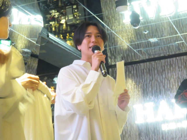 この日は、KAIHARUとREIの2名の新メンバーが加入してから初のお披露目も。イベントではメンバーが全員登場したあと、新メンバーのKAIHARUとREIが最初に挨拶。KAIHARUは「アイドルにあこがれていてキラキラしているのが好きで、(KG9というアイドルグループに入る)チャンスが巡ってきて、選んでいただいたので良かったです。アイドルとしては皆様と一緒にライブとか出来たり、知名度が上がっていけばいいなと思います」とコメント。REIは「幼少期からアイドルになろうかなと思っていた。先にホストになったけど、チャンスが来たのでKG9のためにもいいなと。やるからには主人公であるセンターを狙っていきたい」と意気込み、リーダーのKEITYは、それを受けて「オーディションの時からこの二人は圧倒的にポテンシャルが高いし見た目も良いので選びました。既存のメンバーも負けないで頑張ってほしい」と期待を込めて激励しました。