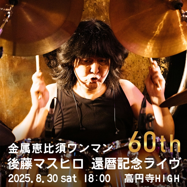 後藤マスヒロ”の生誕60周年&プロドラマー生活35周年、そして還暦を記念し、金属恵比須のスペシャル・ワンマン・ライヴが8月30日(土)に東京・高円寺 HIGHにて開催されます。