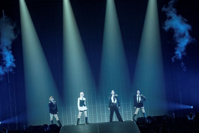 「Sugar Bomb」はしっとりとしたJazz Arrange Ver.にアレンジされ、メンバーがセットの段差を活用したしなやかなダンスと、大人っぽい表情で魅了。KOKONAの「テンション上げていきましょう!」という威勢のいい煽りで始まった「Hi-Five - Punk Arrange Ver. -」は、マイクスタンドを華麗に操り、パワフルにパフォーマンス。AYANEとTSUZUMIの力強いロングトーンが会場を突き抜けます。「キラキラ」は学校のようなセットの中でメンバーが仲睦まじいやりとりを見せ、くるくると変わる表情と仕草でYOU:MEを楽しませました。