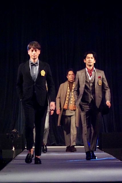 久保田裕之、TARO、直樹が洗練されたスーツ姿でランウェイを歩くと、会場からは驚きと歓声が入り混じったどよめきが起こりました。