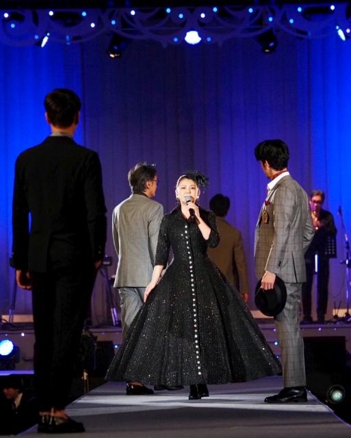 ディナーショーの中でファッションショーが披露されるのは極めて異例の演出。終盤には、歌唱しながら再登壇する南野と、おじフェスの4人が交錯する演出が展開され、まるで男女がすれ違う舞台芝居のようなドラマチックな構成に会場からは感動の拍手が巻き起こりました。