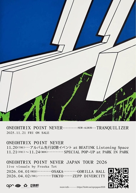 ■Oneohtrix Point Never live visuals by Freeka Tet 2026年4月1日(水)大阪・Gorilla Hall 2026年4月2日(木)東京・Zepp DiverCity open 18:00 / start 19:00 前売 8,800円(税込 / 別途ドリンク代) ※未就学児童入場不可