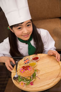 今回のメニューは、ミニパティのメンバーの田口 華、菊地最愛、水野由結の3人が内容やネーミングを考案。アルバム『さくら学院 2012年度〜My Generation〜』に収録されるミニパティの新曲「ミラクル♪パティフル♪ハンバーガー」に登場する具材をワンプレートに載せ、具材の組み合わせを楽しみながらオリジナル・ハンバーガーを作るという趣向に。セットのドリンクも、メンバーが実際にハンバーガーを食べながら味見を繰り返した、“さくらシロップ”を使ったオリジナル・ドリンク「さくらパチパチソーダ」となっています!