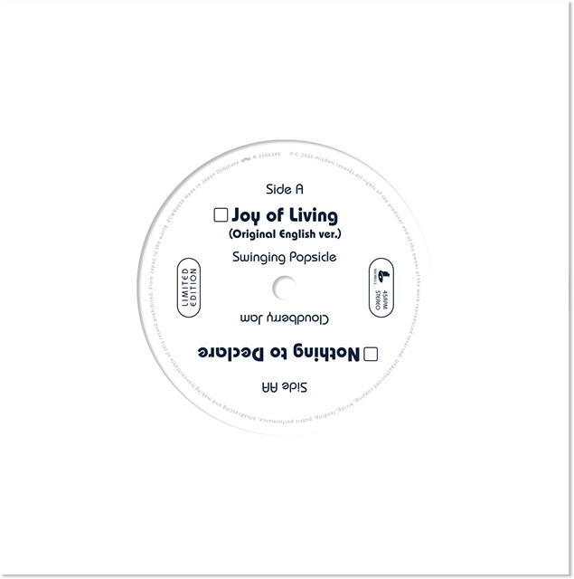 Joy of Living」を、オリジナルの英語詞ヴァージョンで収録。この歌はもともと英語詞の曲で、デビューの際には日本語で発表されていました。今回、デビュー20周年時に新録、限定配布された貴重な音源が7インチで初リリースとなります。カップリングの「Nothing to Declare」は90年代スウェディッシュ・ポップ・ブームの立役者でもあるクラウドベリー・ジャムが、96年にリリースしたアルバム『Providing the atmosphere』に収録の楽曲。当時日本でもラジオヒットしていた作品がこちらも初の7インチでリリースされます。