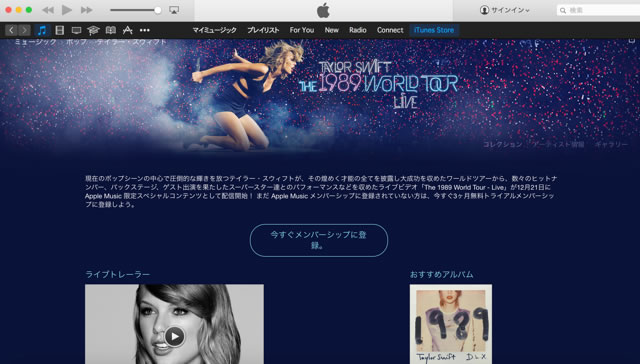 先ごろ誕生日を迎えたテイラー・スウィフトはTwitterで「Thank you so much for all the birthday wishes. I have a little surprise for you. #1989WorldTourLIVE @applemusic(誕生日のお祝いのコメントありがとう、みんなにちょっとしたサプライズがあるよ)」とツイートしており、『The 1989 World Tour LIVE』の予告映像を公開していました。
