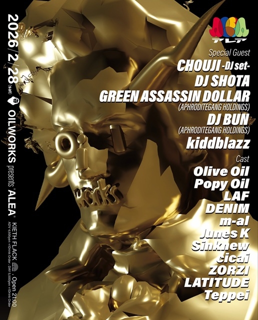 OILWORKSが主催するレギュラー・イベント〈OILWORKS presents ALEA〉が、2月28日(土)に福岡・KIETH FLACKにて開催されます。