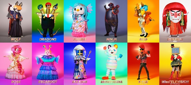 映像の中には、浜崎あゆみの「evolution」を歌うMissテレビジョンと、モーニング娘。の「恋愛レボリューション 21」を歌うネオンパンダの姿が映し出されます。派手でポップ、そしてキュートなその姿からは想像もできない圧倒的な歌唱パフォーマンスは、会場のテンションを一気に熱くし、本編では他にも最新の人気アニメ曲から懐かしの名曲まで豪華ラインナップの楽曲が登場します。キャラクターの個性を最大限に発揮し、ダンサーたちと一糸乱れぬ動きをみせるMissテレビジョンとネオンパンダたちの極上のパフォーマンスに、マスクの中の有名人を推理するパネリストたちも「分からない!」と叫びながら思わず身を乗り出します。そして、MCの大泉洋が「Who is behind the mask?(マスクの中身は誰だ?)」と会場のパネリストや観客、視聴者へ呼びかけます。12名のマスクドシンガーは、芸能界、スポーツ界、文化界など、各界の大スターたち。普段見せることの無い、彼らの意外な一面は、見る者すべてを翻弄するに違いありません。お気に入りのキャラクターの正体を早く知りたいという欲望と、そのパフォーマンスをもっと見ていたいという願望の間で揺れる、会場の観客とパネリストたち。