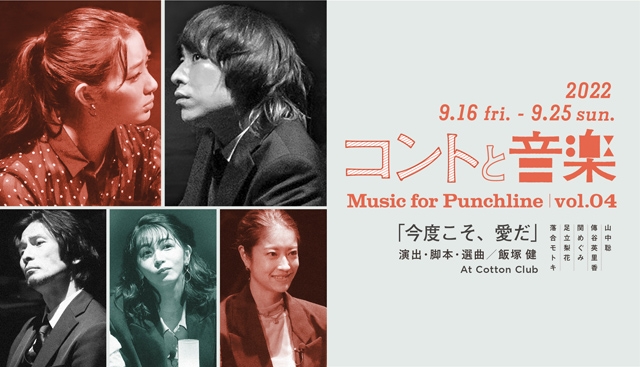 足立梨花ら個性派俳優とともに送る人気シリーズの最新作『コントと音楽 vol.4 「今度こそ、愛だ」』が、9月16日(金)から9月25日(日)まで東京・コットンクラブで上演されます。超至近距離で繰り広げられるストーリーと、バンドによる生演奏と歌による、ライヴレストランを舞台にした「芝居×食×音楽」の会場一体型エンターテインメントです。