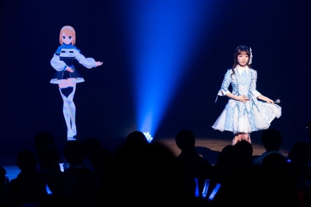 MC後に会場が暗転し、ステージ上に相川奈央が演じる、西浦そらのキャラクターが突如現れると、場内からは大歓声があがった。「22/7 Star Travelers」の宇宙服衣装に身を包み、浮遊するかのように動く小さなドローンステージに乗って登場したキャラクターは、その後、リアルメンバーと夢のコラボパフォーマンスを魅せてくれることに。