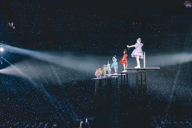 メンバーそれぞれがスポットライトを浴びるソロパートやダンスブレイクを経て披露された「CO-個性」「Going!」では、グループが大切にしてきた“個性”というキーワードが、パフォーマンスそのものとしてまっすぐに提示された。そこから「ふるっぱーりー!」で会場のテンションをもう一段階引き上げると、仲川瑠夏・月足天音・真中まなによるユニット曲「Round and Round」へ。ダンス・ミュージック然としたビートとグルーヴが前に出た楽曲で、7人が持つ表現の幅広さを改めて印象づけた。