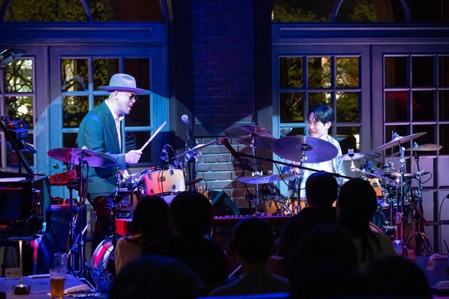 事前にオンラインでの打ち合わせを重ねたことで、初合わせとは思えない完成度で、リハーサルも極めてスムーズに進行し、本番では互いのバンドに入り込みながら編成が自在に変化する、“予定調和のないグルーヴ”が生まれた。