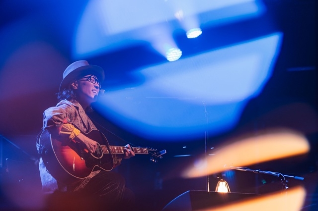 ホイルカーテンが一面に煌めくラグジュアリーなステージ。“追憶”をテーマにしたライブはボ・ガンボス「魚ごっこ」のカバーからスタート。永積の伸びやかな歌声が会場に響き、心地の良いテンポの演奏に合わせて会場が弾む。まるで音と遊んでいるような無邪気さのある1曲に、会場はさっそく盛り上がりを見せる。続いて披露されたのは、自身がゲストボーカルとして参加した東京スカパラダイスオーケストラ「追憶のライラック」。トランペットの軽やかな音に合わせ、永積のリラクシングな歌声が響く。