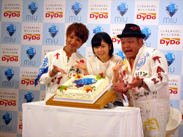 小芝風花が登場。CMキャラクターに選ばれたことを「非常に光栄に感じました」とコメント。4月16日が誕生日という小芝を祝い、CMソングを担当するJaaBourBonzのヴォーカルYASUとTAKANOがバースデイ・ソングを唄いながら登場。オリジナル「miu」ケーキを贈呈し、小芝は「すごく嬉しいです。これ、爆発しないですよね?」とドッキリを疑う発言で笑いを誘いました。