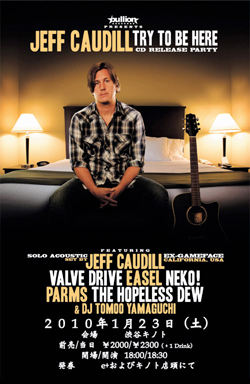 〈bullion PRESENTS JEFF CAUDILL 『TRY TO BE HERE』 CD RELEASE PARTY〉 ●日時:1月23日(土) ●会場:東京・渋谷kinoto ●共演:VALVE DRIVE, EASEL, NEKO!, PARMS, THE HOPLESS DEW ※音楽ライターの山口智男氏もDJとして参加決定。