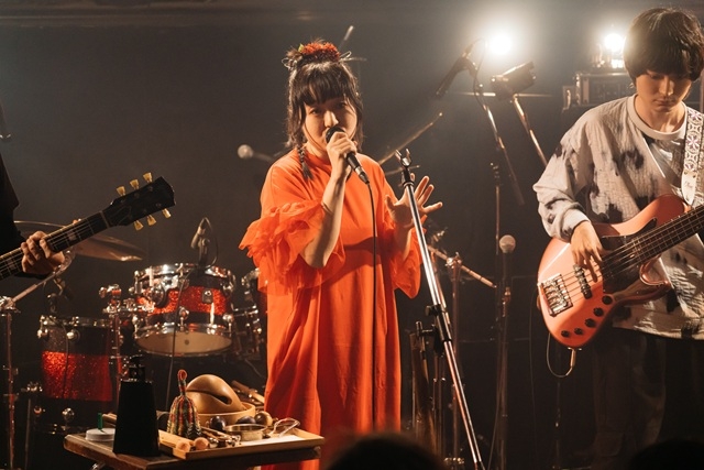 MC明けに披露されたのは、なんと2000年12月以来演奏されていなかった「病院坂の首縊りの家」。長年のファンを驚かせる選曲で、こちらも横溝作品をテーマにした曲である。「雪割草」や「真珠郎」など、高木大地はこれまでも横溝作品をモチーフにしてきたが、“金田一耕助最後の大仕事”を描いた超・名作を楽曲に仕上げたのが、高校3年生のときだったというのだから驚きだ。怪しげなリフに寄り添うストレンジなシンセ音、祭囃子、民謡調のメロディなど、若き日の高木が持っていた実験精神や挑戦心が随所に感じられる一方で、ロクロウの表情豊かなベース香珀の即興性あふれるヴァイオリン・ソロは、今のメンバーだからこそ到達できた完成度と言えるだろう。