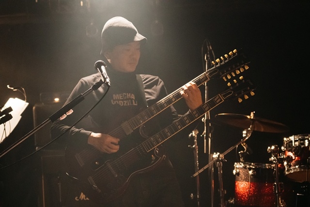 アンコールの前には、バンドの若手二人、埜咲ロクロウ(b)と香珀香珀(key)が場をつなぐ。思えば、埜咲ロクロウはライヴ全編を通して、見せ場だらけの超絶ベースプレイを披露。香珀は34台の鍵盤を駆使したほか、ヴァイオリンも奏で、鬼気迫るパフォーマンスでも圧倒。とにかく華のある二人は、将来の活躍も楽しみだ。若き日のプレイが観られたことはいつか自慢になるかもしれない。