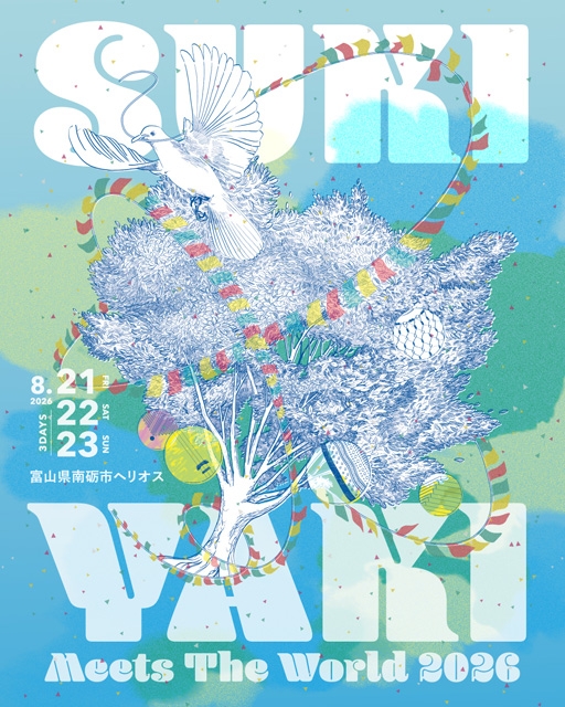 富山県南砺市を拠点に、200名を超えるボランティアスタッフが企画・運営する、市民参加型フェスティバル〈スキヤキ・ミーツ・ザ・ワールド〉が、35回目となる今年は8月21日(金)から8月23日(日)までの3日間、富山・南砺市福野文化創造センターほかで開催されます。場内最大のヘリオスステージに出演するアーティストラインナップ第1弾が発表されました。